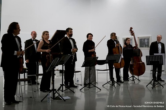 El Sonor Ensemble, saludando tras el estreno de la Burlesca (Badajoz, 26 de octubre de 2015)