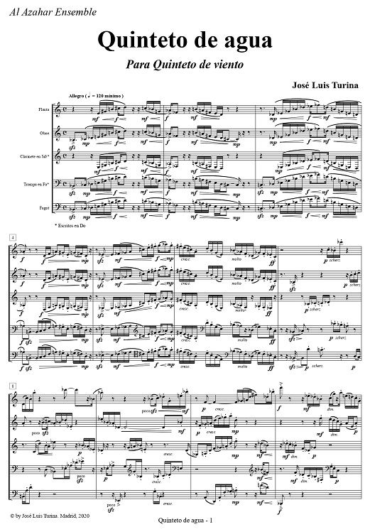 Primera página de la versión para quinteto de viento de los Cuatro Cuartetos