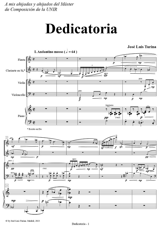 Dedicatoria responde a un encargo de la Universidad Internacional de La Rioja (UNIR) con destino a cerrar el concierto de Laureados del Máster de Composición del curso 2024-2025, de cuya promoción fui designado padrino.