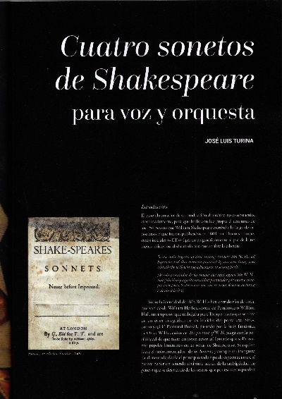 Sonetos de Shakespeare, pero cambiando el planteamiento camerístico inicial por el sinfónico. Con esta obra, por otra parte, se completa un capítulo de mi catálogo en el que hace tiempo me encuentro enfrascado (el relativo a la música vocal, y con ello a las siempre difíciles y complejas relaciones entre música y palabra), con este mi primer y hasta ahora único ciclo de