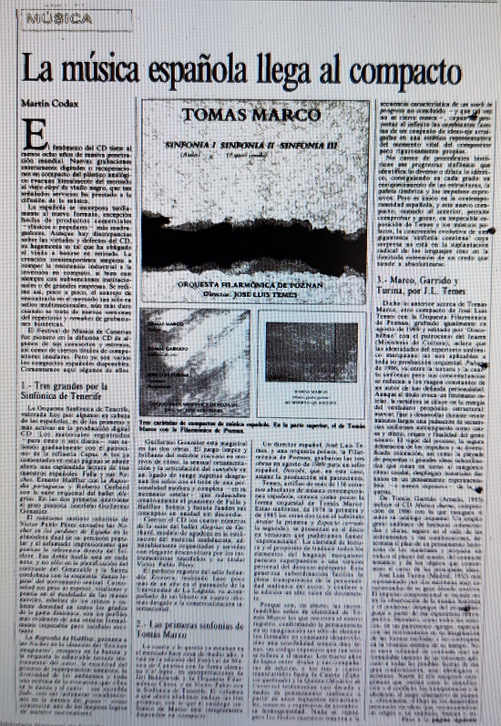 (Crítica a la grabación de un CD del sello Discobilbao con obras de Tomás Marco, Tomás Garrido y José Luis Turina interpretadas por la Orquesta Filarmónica de Poznan bajo la dirección de José Luis Temes, publicada en en el diario