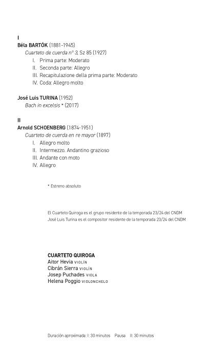 It is with the members of the Quiroga Quartet that I have had a very fluid relationship and great friendship for many years, reinforced by the teaching collaborations that they have provided on several occasions to the chamber music activity of the National Youth Orchestra of Spain in my time as its artistic director. And thinking of them I wrote