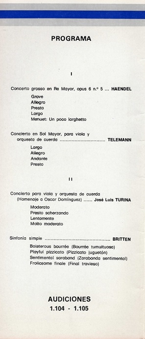 Program of the premiere of the Concerto for Viola and Strings