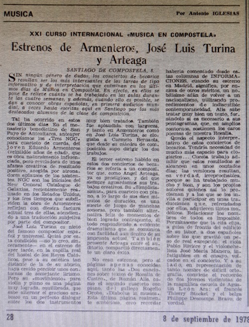 Premieres by Armenteros, José Luis Turina, and Arteaga
