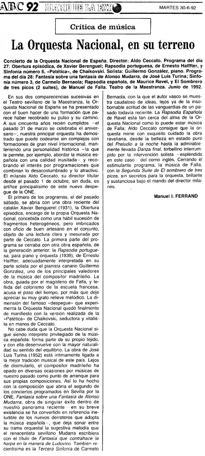 (Review published in the newspaper ABC. Seville, June 30, 1992)