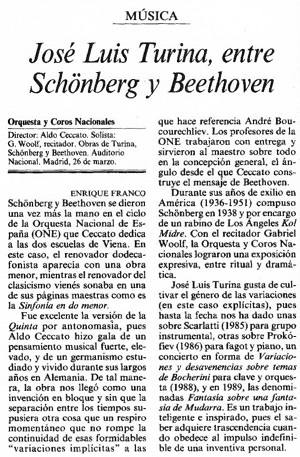 Works by José Luis Turina, Schoenberg, and Beethoven Performed by the OCNE