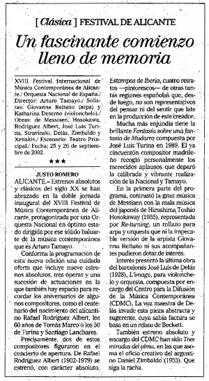 (Review published in the newspaper Información. Alicante, September 27, 2002)