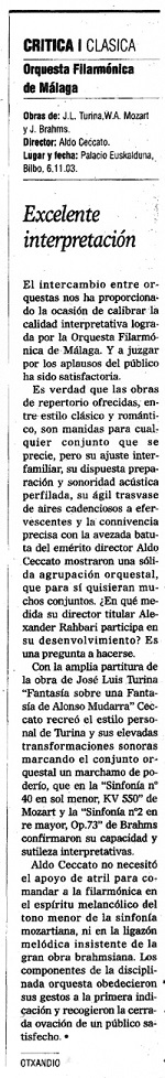 (Review published in the newspaper Gara. Bilbao, November 10, 2003)