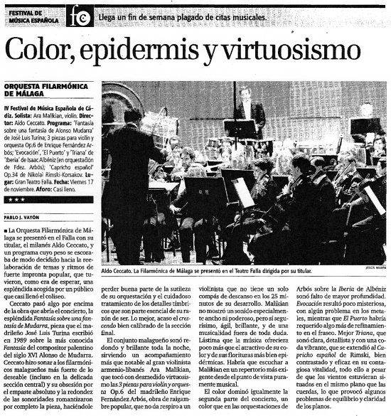 (Crítica publicada en el Diario de Cádiz. Cádiz, 26 de noviembre de 2006)