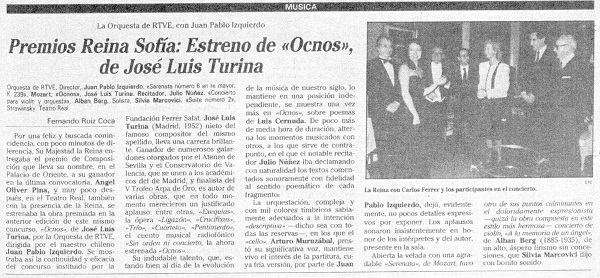 Brilliant premiere of "Ocnos", by José Luis Turina, Queen Sofía Prize 1986