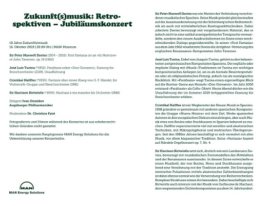 Program of the premiere of the string orchestra version of the Paraphrase on "Don Giovanni" (Augsburg, October 16, 2019)