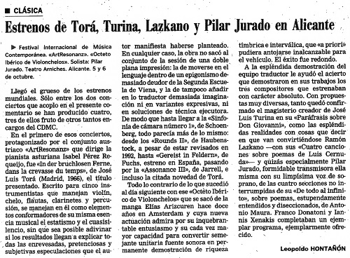 Premieres by Torá, Turina, Lazkano and Pilar Jurado in Alicante
