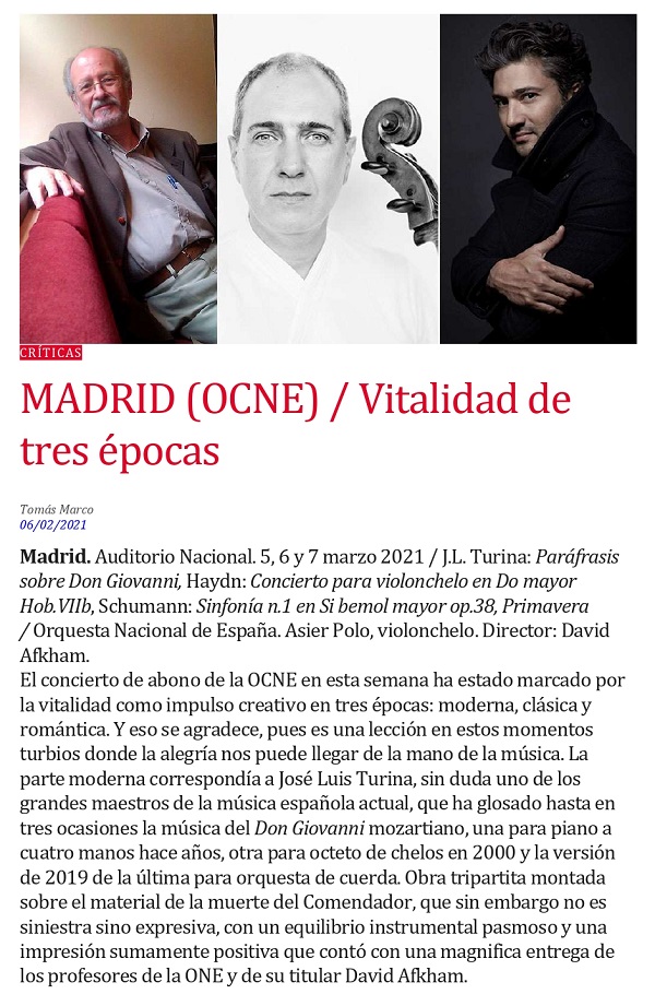 (Review published in the Internet magazine Scherzo. Madrid, February 6, 2021)