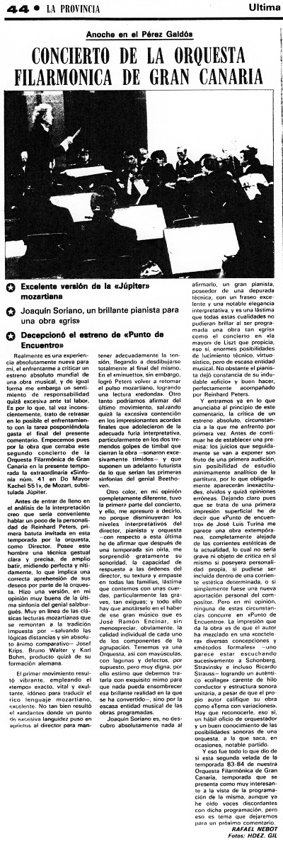 (Review published in the newspaper "La Provincia". Las Palmas de Gran Canaria, October 29th, 1983)