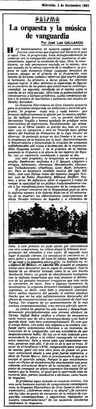 (Review published in the newspaper "La Provincia". Las Palmas de Gran Canaria, November 2nd, 1983)