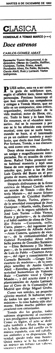 (Review published in the ABC newspaper. Madrid, December 7, 1992)