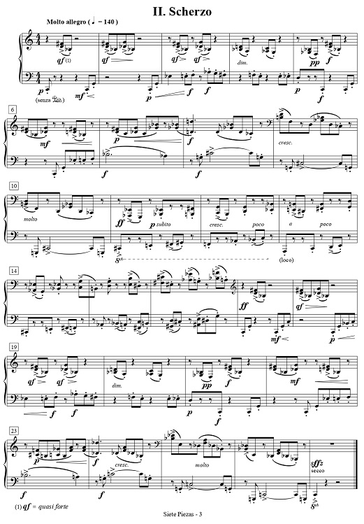 These Seven Pieces for piano were written in March 1987, and are dedicated to my son Luis. They were premiered by the Russian pianist Eugenia Gabrieluk at the Manuel de Falla Auditorium of the Royal Conservatory of Music in Madrid, in December 1991.