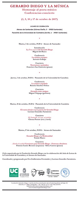Given the celebration between October 3 and 17, 2017, at the Ateneo de Santander, of a series of conferences and concerts dedicated to the figure of the Cantabrian poet Gerardo Diego (Santander, 1896 - Madrid, 1987) with the generic name of