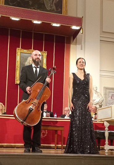 Suite opens with a slow movement titled "Arioso," in which the lyrical treatment of the cello is "challenged" by the harpsichord's commentaries. It is followed by a fast movement, "Corrente," in which the melodic material is equally handled by both instruments, with frequent canonic imitations.