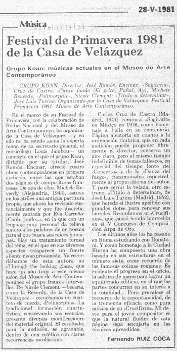 (Review published in the newspaper Ya. Madrid, May 28, 1981)