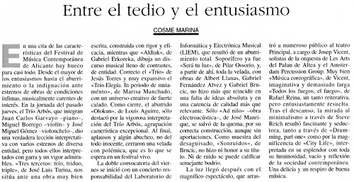 (Review published in the newspaper Información. (Alicante, October 3, 2003)