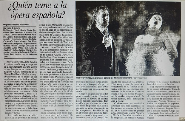 Artículo publicado en el libro-programa del estreno de la ópera en el Teatro Real. Madrid, diciembre de 1999
