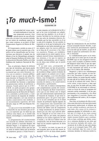 El presente artículo fue redactado para el número 23 (octubre-noviembre de 2000) de la revista Doce Notas, donde fue publicado en la sección "Cajón de sastre" bajo el tan desafortunado como incorrecto título "To much-ismo", de forma incompleta y bajo el seudónimo "Calidad del Lío".