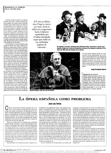 Bien es verdad que los tiempos han cambiado mucho desde entonces, y que el italianismo imperante a comienzos del siglo ha sido sustituido por un mayor equilibrio en cuanto a la nacionalidad de los compositores, pero sigue sin resolverse la espinosa cuestión de la ópera española en la que Chapí y el resto de los compositores de su generación creían firmemente, como una vía tan lícita como lógica de afirmar la fuerza creativa de la música escénica del país, que, bajo las presiones italiana, alemana y, en menor medida, francesa, se veía relegada al cultivo del género chico y, en el mejor de los casos, al de la zarzuela grande.