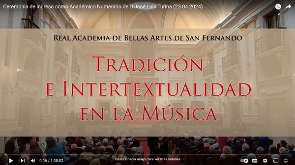 No debo extenderme más. La alegría que me produce el ingreso de José Luis Turina en esta Academia es pareja al brillo que su presencia va a aportar a la Sección de Música de esta casa, cuyos ciento cincuenta años de existencia se cumplen en este dos mil veintitrés.