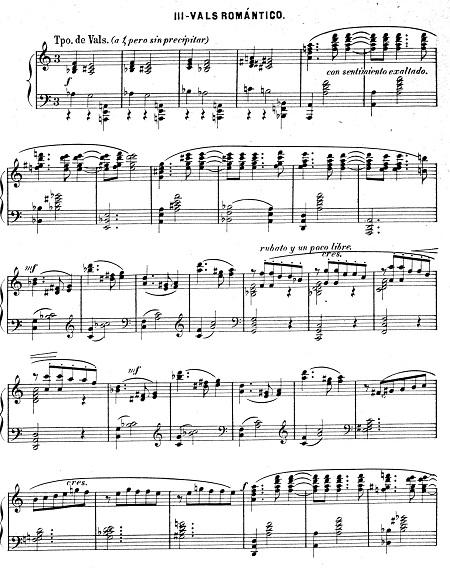 Primera página del tercer movimiento ("Vals romántico") de Linterna mágica, op. 101, para piano